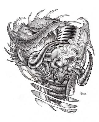- художественная татуировка (ч/б):