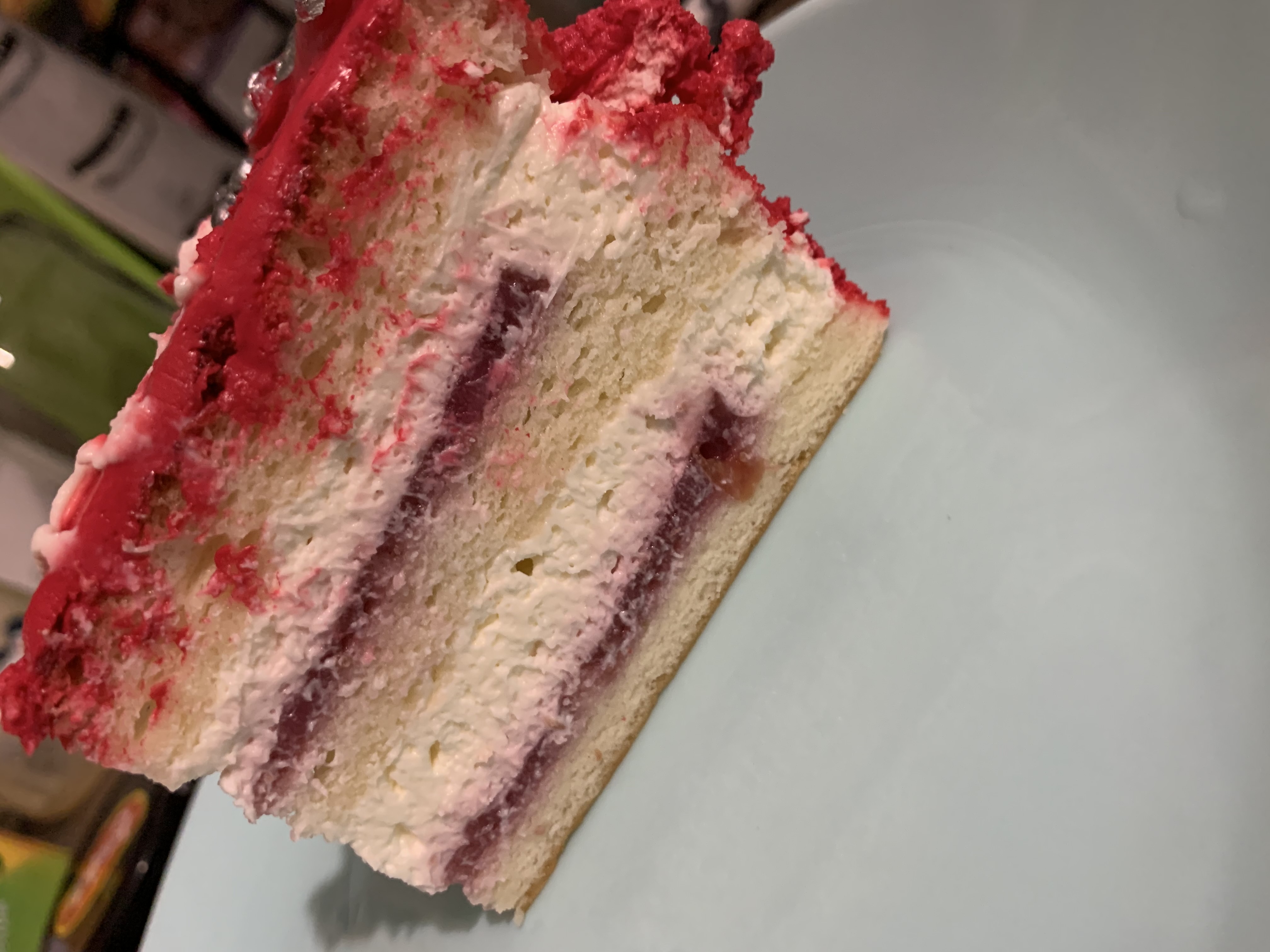 Состав: шифоновый бисквит, кремчиз и ягодный конфитюр