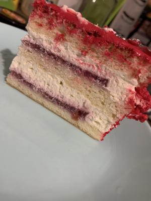 Состав: шифоновые ванильные или шоколадные коржи, кремчиз и ягодный конфитюр